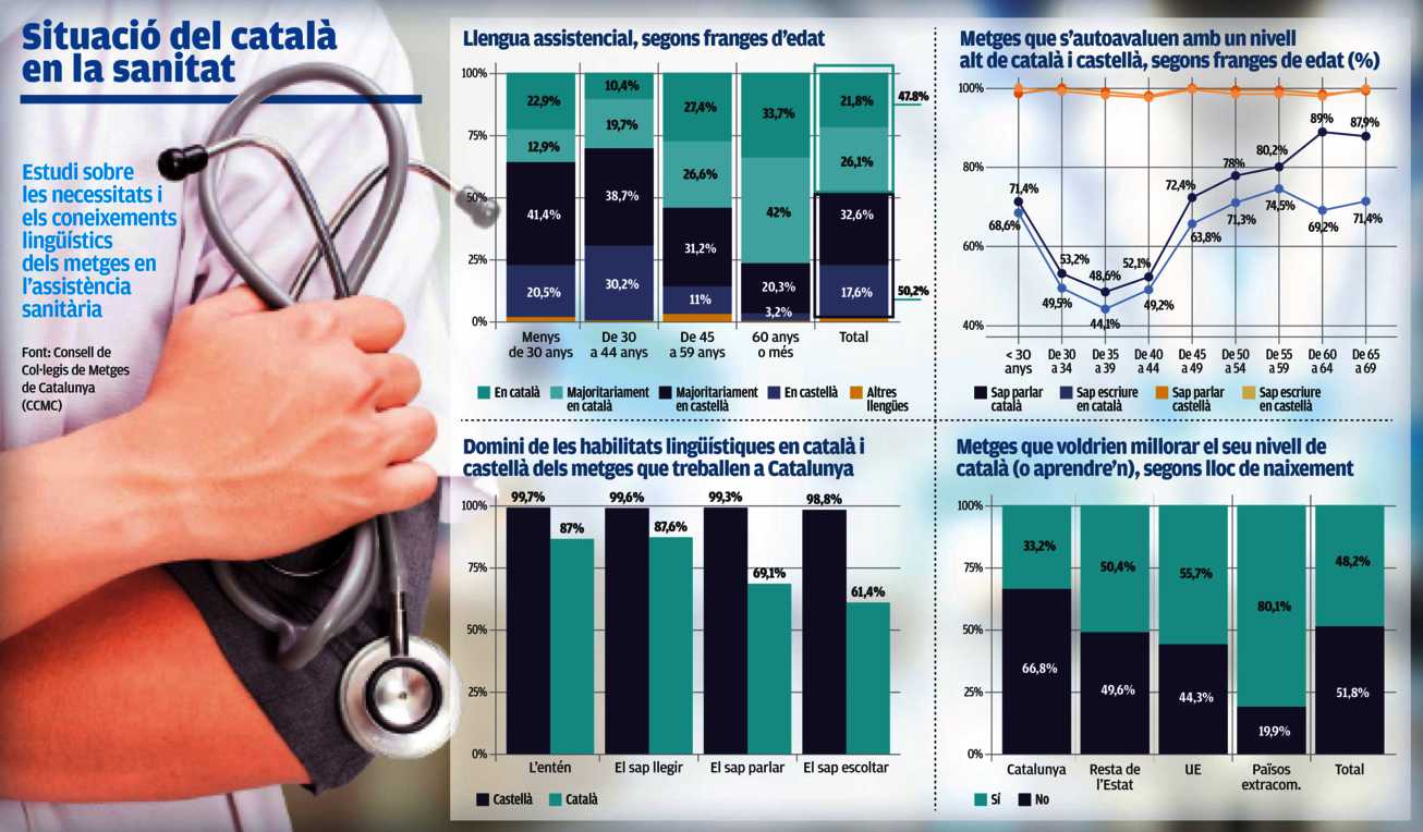 Plataforma per la Llengua ha recollit dades que indiquen que només un 40,2% del personal sanitari parla habitualment en català amb els pacients, una xifra que es redueix especialment en hospitals i en àrees urbanes grans, com Barcelona. Aquestes dades evidencien una desconnexió entre la competència lingüística dels sanitaris i l’ús real de la llengua durant l’atenció.